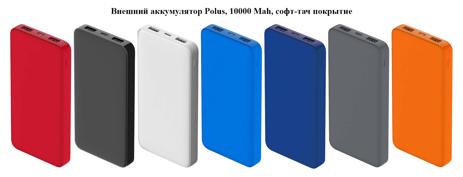 Внешний аккумулятор Polus, 10000 Mah, софт-тач покрытие, 14х7х1,5 см
