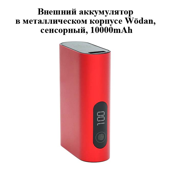 Внешний аккумулятор в металлическом корпусе Wōdan, сенсорный, 10000mAh, 7,9х5,7х2,4 см